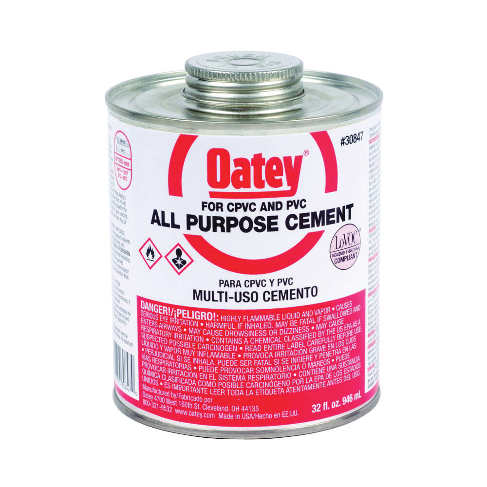 Medium bodied milky clear cement for ABS, PVC or CPVC up to 6 in Dia. Recommended for pipe and fittings SCH 40 and 80, potable water, pressure pipe, gas, conduit and DWV. Recommended application temperature 40 to 110 deg F. Meets performance requirements of ASTM D-2564, D-2235, F-493. Check local codes for acceptability of this product.
