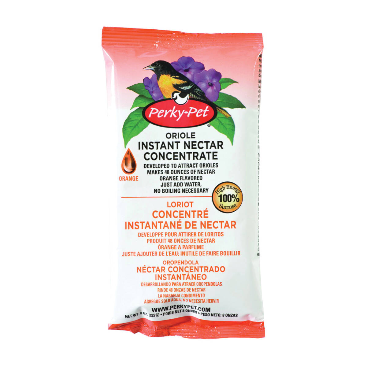 Instant oriole nectar has a citrus flavor specifically for the oriole's love of oranges. This nectar concentrate made of 100% sucrose, which provides the highest amount of energy to birds. The 8 oz bag makes 48 oz of oriole nectar. It is so easy to use, just simply stir in water and there's no boiling necessary.