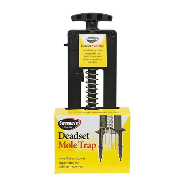Trapping moles has never been easier, thanks to the sleek, ergonomically designed Deadset® mole trap. If you've ever struggled to set a mole trap, you will undoubtedly appreciate how effortless it is to activate this yard mole trap. The Deadset® features a comfortable, easy grasp handle and an oversized activator plate that can be pushed into the tunnel by hand or foot.