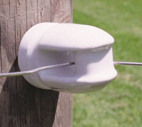 Our Zareba® large ceramic lag screw insulators are used to attach electrified wire to wood posts without losing energy through the post. These ceramic insulators can be used with all fence wire, including high tensile, as well as poly rope and poly tape.