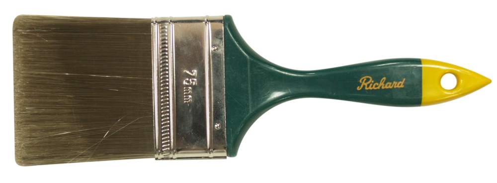 Richard Premier Bever Tail Paint Brush, Brush Type: Straight, Polyester Bristle, 3 in Ferrule, Short Handle, Green/Yellow