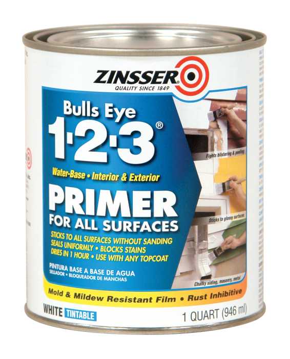 There's a reason Rust-Oleum Zinsser Bulls Eye 1-2-3 Water-Base Primer is our most popular primer. This premium, whole-house primer-sealer provides outstanding performance indoors and out, with low odor, great flow and leveling and a flexible, acrylic formula.
