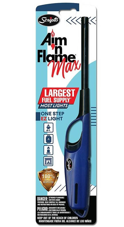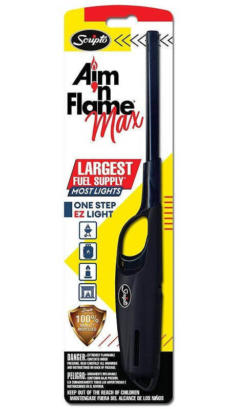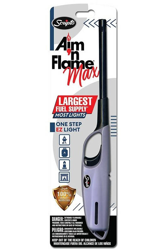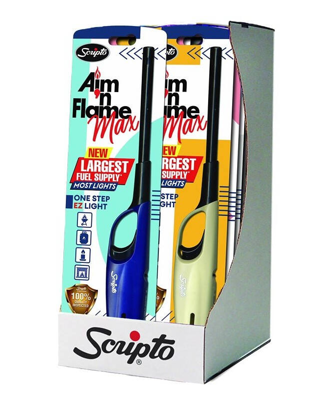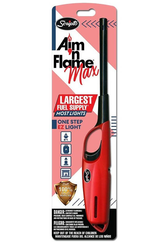 Aim 'N FlameĀ® Max, one of the top-selling multi-purpose lighters in the US has been renovated with a new look. Modernized with vibrant new packaging and fresh new handle colors red, blue, purple and neon green, the new Aim 'N FlameĀ® Max brings style to everyday lighting activities. Now with 41% more fuel.