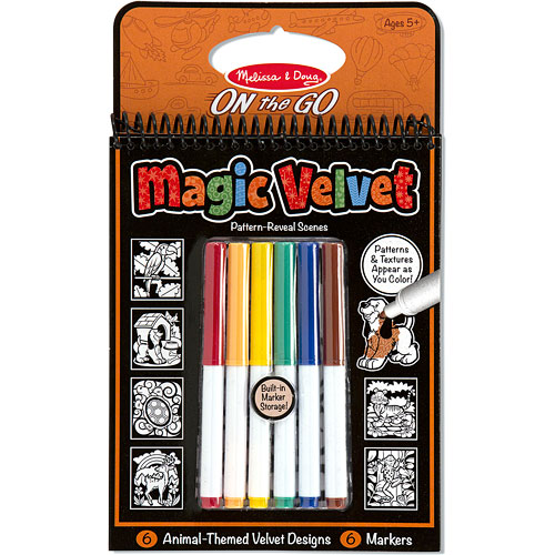 Magic Velvet coloring scenes are filled with special effects! The velvet-flocked backgrounds create amazing contrast with the six vibrant marker colors. And hidden patterns appear when you color in the scenes! This compact, spiral-bound coloring activity book is just the right size for kids and perfect for travel . . . the felt-tip markers store right in the cover. Six sturdy coloring boards feature animal - themed scenes.
