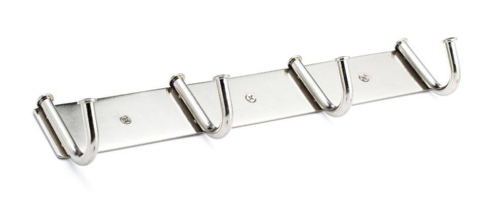 This metal hook rack is a must for any modern design. The contemporary elements of geometric lines and a brushed nickel finish enhance any room.