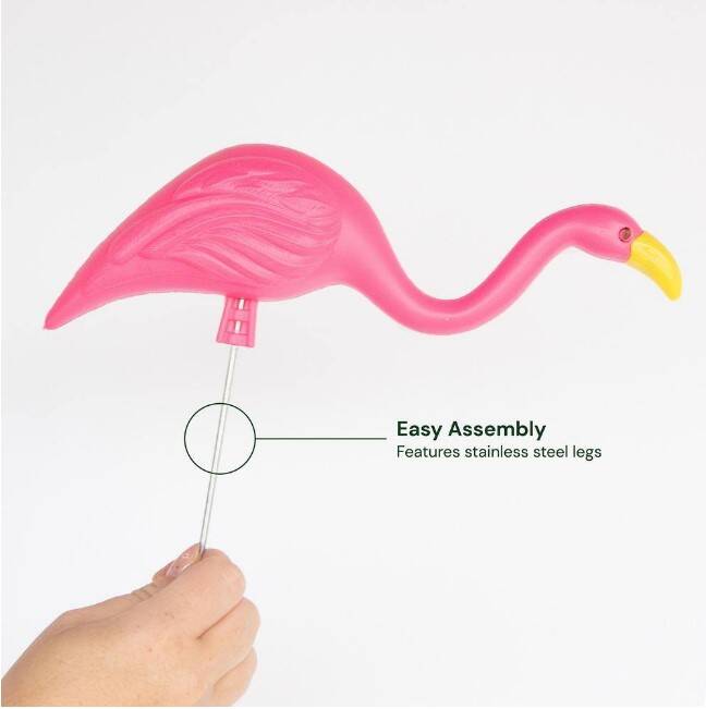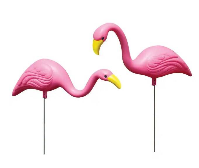 These whimsical pink flamingos feature sturdy metal legs and creative packaging for retail.