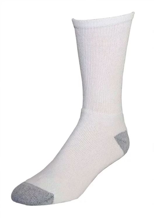 6 Pack Men's Crew Sock. White Sock with Grey Heel and Toe