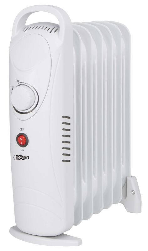 Mini oil filled heater has a 700W heat setting, thermal overload protection and tip-over safety shut-off. Heavy-duty metal construction. ETL/CETL listed. Size: 15-1/2 in H x 5-1/2 in W x 12-1/2 in D.