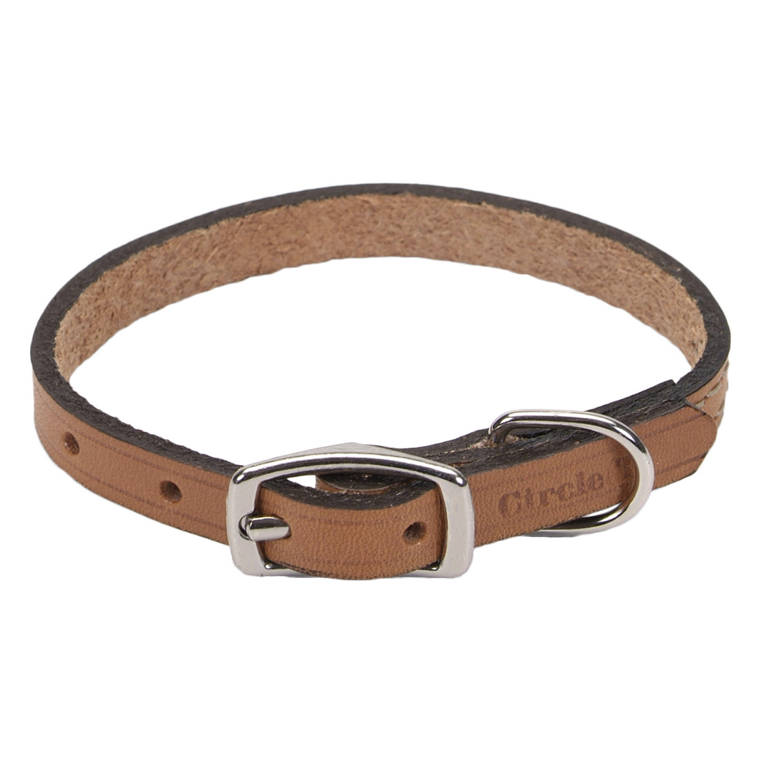 Our handcrafted Circle T Oak Tanned Leather Town Dog Collar offers rich color that becomes even more beautiful with age. Available in 3/8 in x 10 in , 12 in ; 1/2 in x 14 in , 16 in ; 5/8 in x 14 in , 16 in ; 3/4 in x 18 in , 20 in ; and 1 in x 22 in , 24 in . Made from full-grain leather, this top-quality collar is vegetable tanned using tree bark to achieve excellent leather character, and the hides are dyed for luxurious color. Our Circle T Leather Collar offers a touch of elegance with strength and durability.