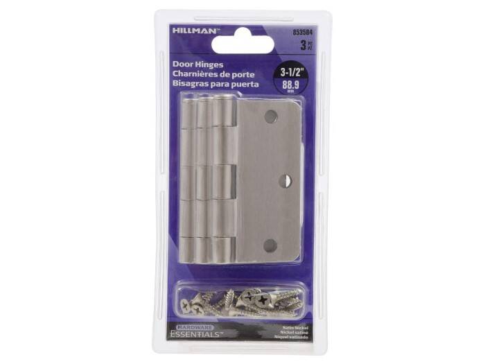 Hardware Essentials hinges are two metal plates, one attached to the door and the other to the door jamb, connected by a pin that allows the door to swing open and closed