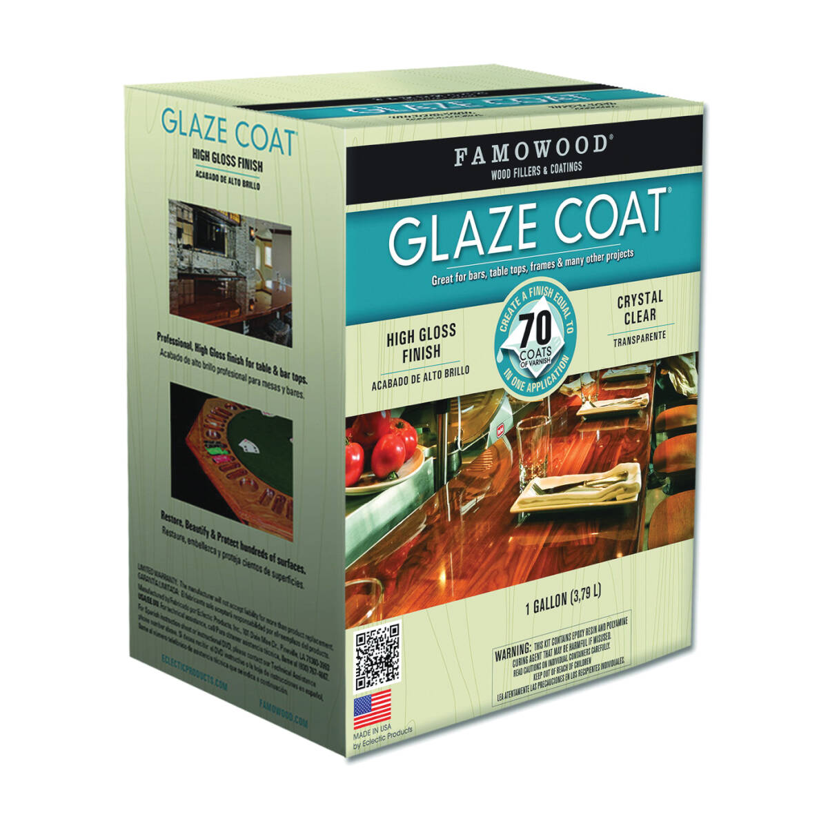 This ultra-clear, high gloss finishing epoxy is ideal for home improvement and craft projects. FAMOWOOD glaze coat is a pour-on epoxy coating that can be used on most surfaces rough or smooth, stained or painted. It's great for coating tables or bar tops, preserving photographs or imbedding decorative items. Just one coat equals 70 coats of varnish.