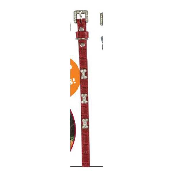 Faux alligator skinned collars for the trendiest pets. Each color comes with different sparkling gem trinkets.