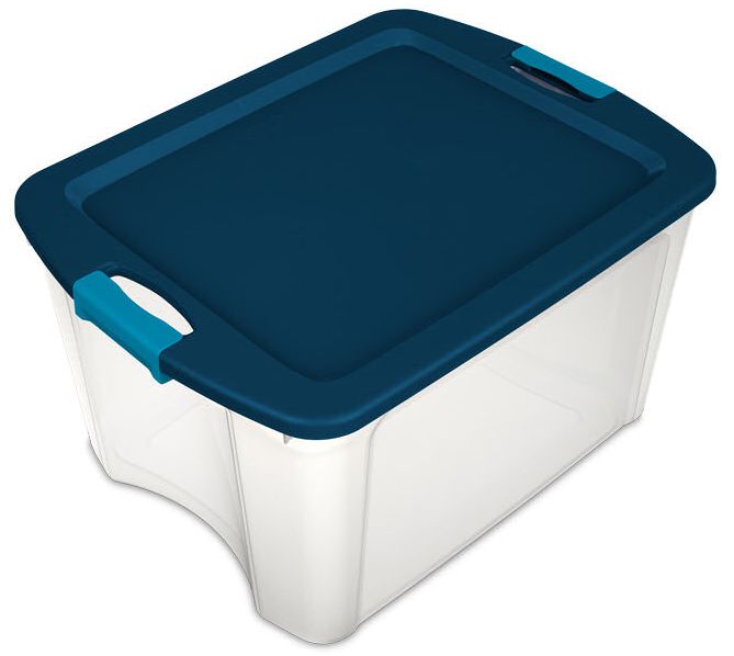 18-Gallon Clear Latch And Carry Storage Tote With True Blue Lid And Blue Aquarium Latches