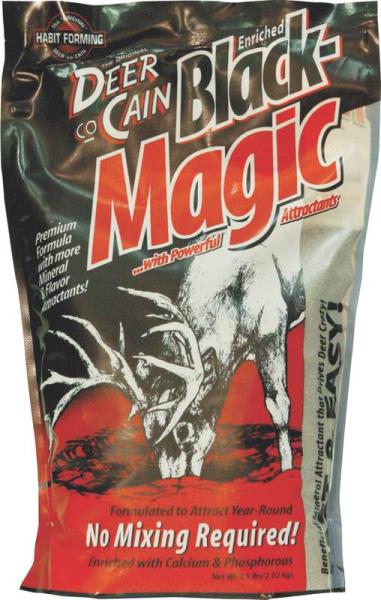 A premium formulation of Deer Cane with more minerals and flavor attractants that requires no mixing and begins instantly attracting deer. Once placed on the bare ground, Black Magic is enriched with calcium, phosphorus and sodium to continually contribute to the health of your deer herd.