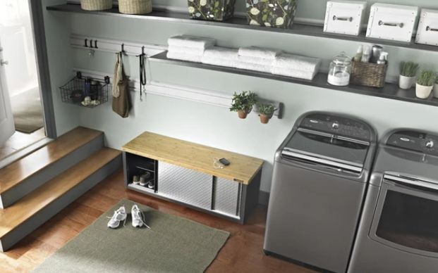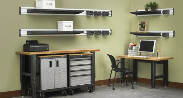 This Gladiator 48 in Shelf keeps a variety of items off the floor but within reach. This heavy-duty steel shelf can hold up to 50 lbs. and is easily relocated onto different Gladiator Wall Systems. Friction lock tabs keep this shelf secured to the wall.