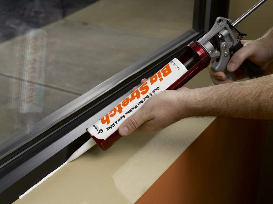 Homes move. Window frames pull away from the siding or doors shift against the brick. They move when the temperature changes, the rain falls, the wind blows or the earth quakes. Most caulks can?t take it ? they dry hard and crack. That?s why you need Big Stretch® high performance water-based sealant. Its powerful adhesion and extreme elasticity will stick, twist, bend, compress, and stretch ? more than 500% of original size! ? to handle most any movement your home can dish out, all without cracking.