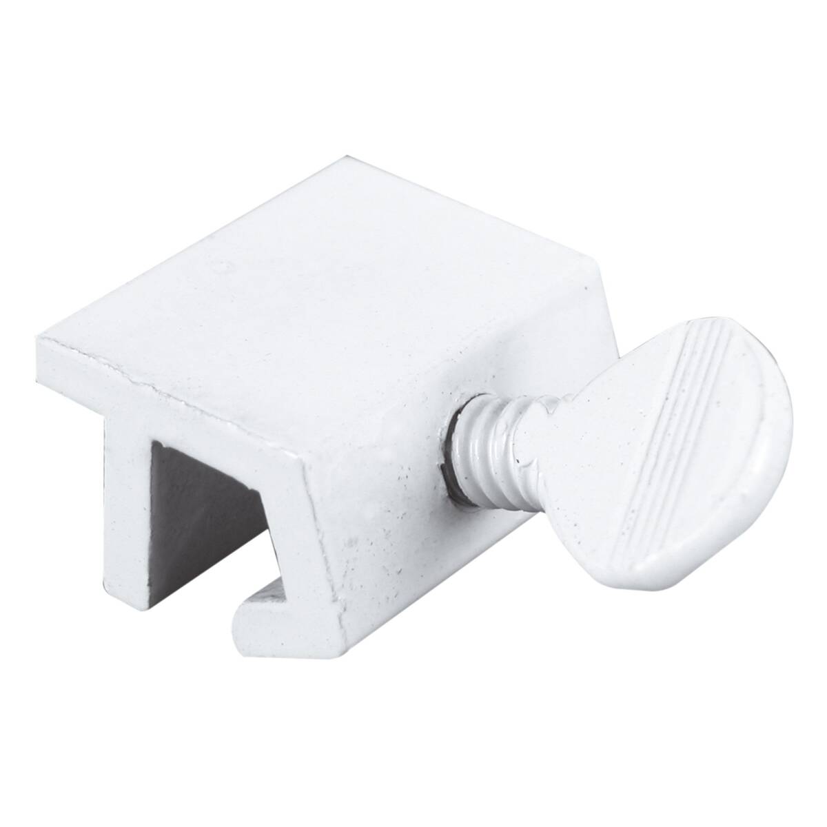 Extruded aluminum lock with steel thumbscrew for use on metal horizontal sliding windows. Finish by tightening thumbscrew with pliers to securely lock windows in closed or ventilating positions.