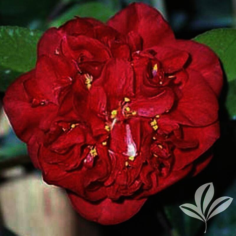 Features large, fragrant, deep red, full peony-form flowers in spring against deep evergreen foliage. This Camellia has a vigorous, compact upright growth habit and matures at 6 to 8 ft tall and wide. Excellent landscape specimen.