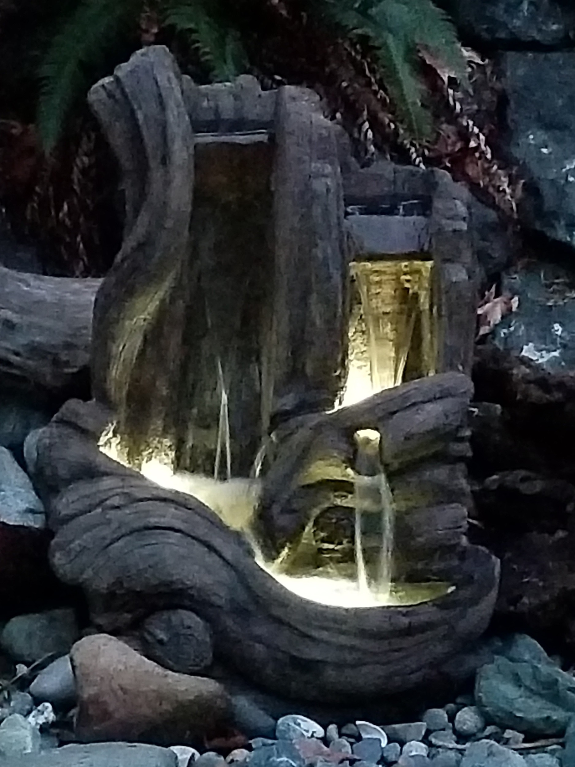 Coordinate your landscape with 2249 Driftwood Birdbath and 2802 Driftwood Bench. Brilliant underwater light kit included for shimmering night time effect.