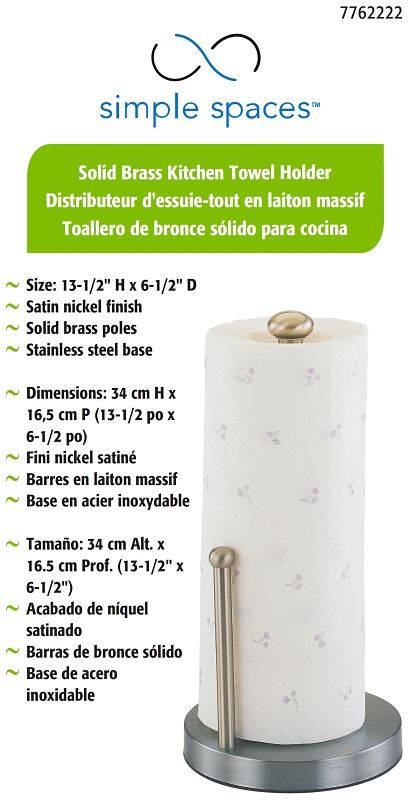 You can keep paper towels handy with the stainless steel paper towel holder from Simple Spaces Standing on a weighted, circular base, this paper towel holder features a main column that accommodates an entire roll, while the short bar lets you tear off the required quantity of paper towel effortlessly. Made from stainless steel for durability and lasting use, it features a simple design that seamlessly blends with all decor styles, bringing functionality and style to your kitchen, vanity or bathroom counters.