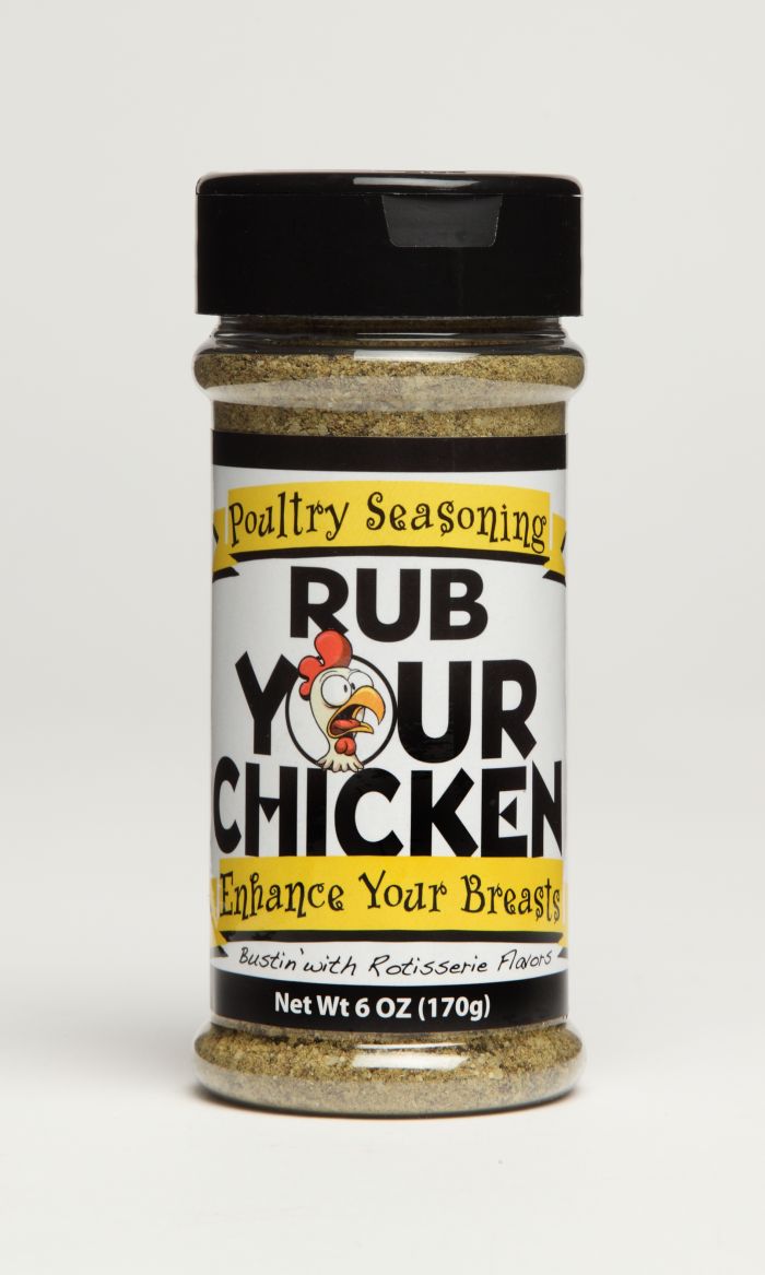 Rub Your Chicken Poultry Seasoning in the perfect combination of spices and herbs with a touch of citrus that adds incredible flavor to any meal. Whether you're cooking in the kitchen, grilling on the patio, or smoking at the ranch, Rub Your Chicken is the essential seasonings for all things that cluck. So, before you cook up your next bird, don't forget to rub your chicken and enhance those breasts.