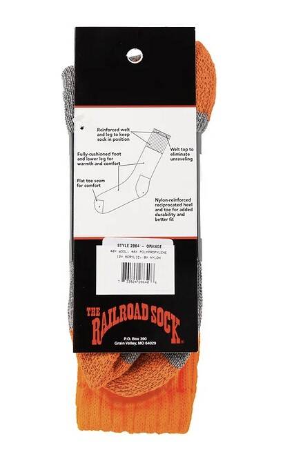Single Pair Full Terry Wool Outdoor Sock - Grey with Hunter Orange Stripe, Heel and Toe
