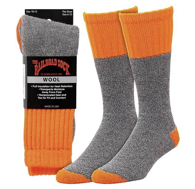 Orange / Gray Heavy Duty Wool Blend Men's Hunting Boot Sock, 1-Pack, L