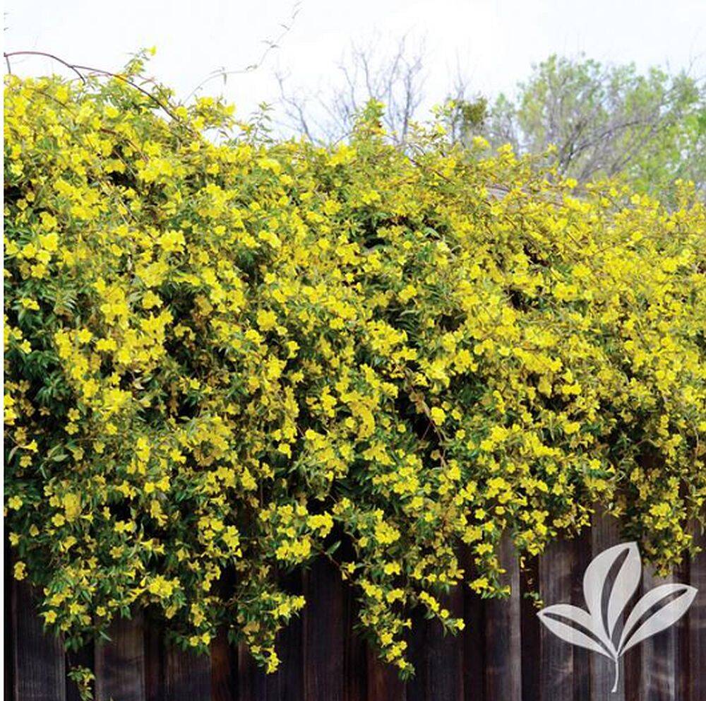 This rapid growing and twining vine can reach 10 to 20 ft , or it can be grown as a mounding shrub 3 to 4 ft tall and wide if not supported. Foliage is glossy with clusters of bright yellow, trumpet-shaped flowers. Very showy early in the spring.