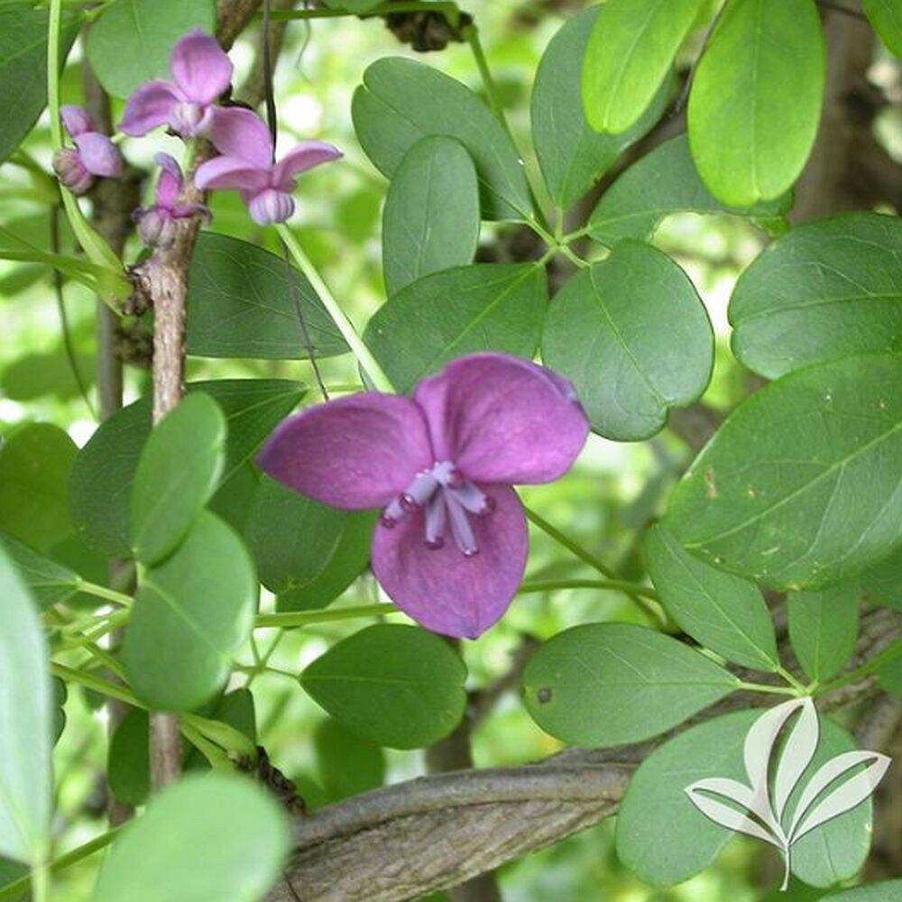 A deciduous to semi-evergreen, climbing or trailing vine that rapidly grows 20 to 40 ft Develops small purple to red, fragrant flowers in mid-spring that give way to violet elongated fruit pods.