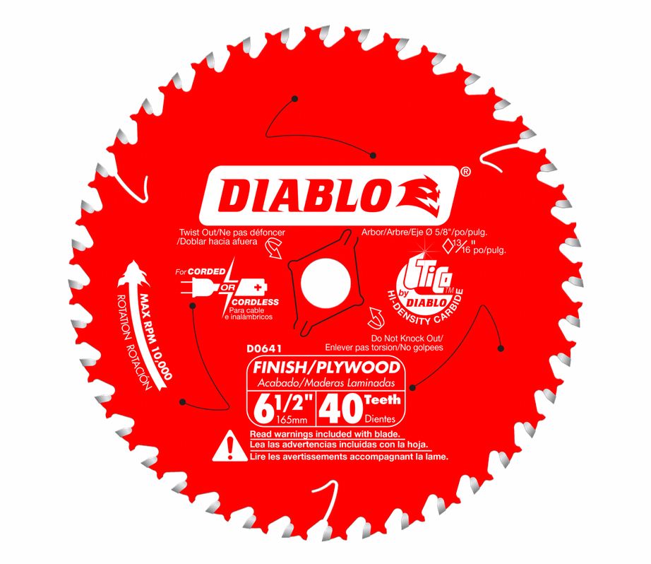 Diablo® Finish blades are the perfect choice for excellent rips and crosscuts using a portable saw. They deliver a smoother edge than framing blades, but still provide an excellent combination of cutting speed and long life. A great choice for jobsite finish cuts in 1X, decking, fencing, fascia and plywood.
