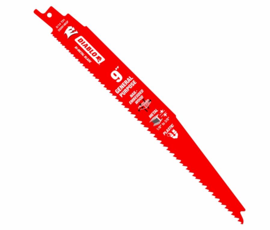 Diablo's reciprocating saw blades are specifically designed for maximum performance in general purpose (nail-embedded wood and metal) applications. These high performance blades feature bi-metal technology that delivers up to five times longer life of standard blades on the market. Diablo's patented variable tooth technology provides faster cuts with less vibration.