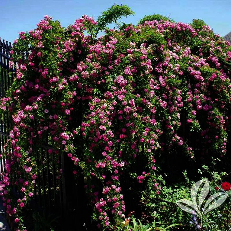 This pink-shaded Rose is very tough, disease free, and can easily reach 10 to 15 plus feet. Once established, it will heavily bloom spring and fall along with flower flushes through the year.