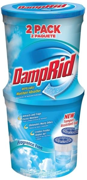 DampRid crystals absorb excess moisture from the air that can cause moldy, musty odors. You can use DampRid Refillable Moisture Absorbers wherever you have excess moisture including bathrooms, basements, clothes closets, laundry rooms, bedrooms, offices, kitchens, storage closets, gym lockers, boats, stored RVs, or anywhere excess moisture is a problem.