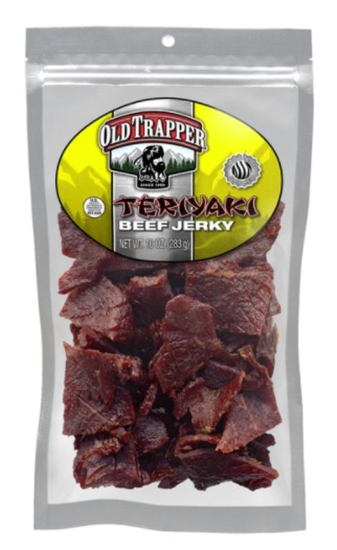 To create the unique salty-sweet flavor in our Teriyaki beef jerky, we marinate lean beef strips in soy sauce and apple cider vinegar, season the cuts with our own mix of spices, then smoke them with real wood until theyre tender, juicy, and delicious. You deserve the best, eat Old Trapper.