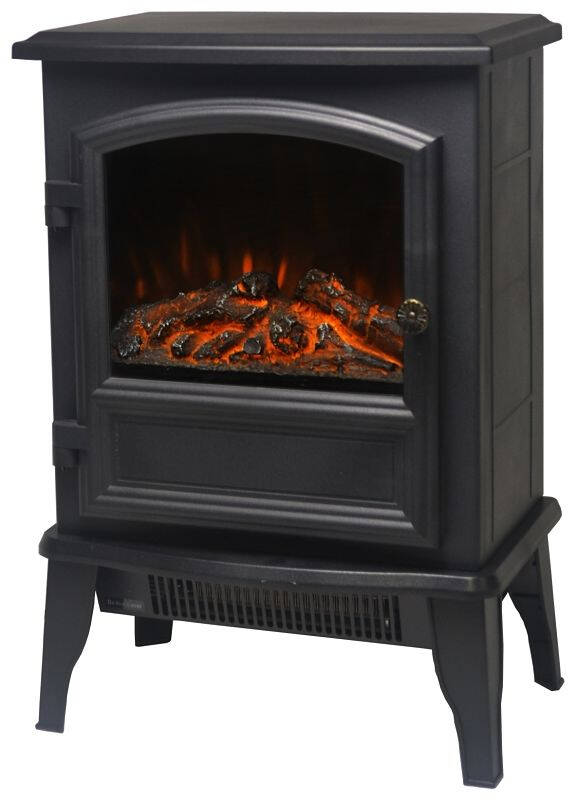 This PowerZone electric Stove offers a traditional look and contemporary efficiency, making it an ideal supplemental heat source. With the adjustable thermostat featuring two heat settings, it's easy-to create the comfort level you want. Plus, this classic stove features a real flame effect (resin logwood) with adjustable brightness, adjustable thermostat control, an auto-matic overheat protection system and a two-prong grounded plug. Heats up to 160 sq ft. 120V/60Hz, CETL/ETL Listed. Size: 14-5/8 in x 9-7/8 in x 21-4/3 in.