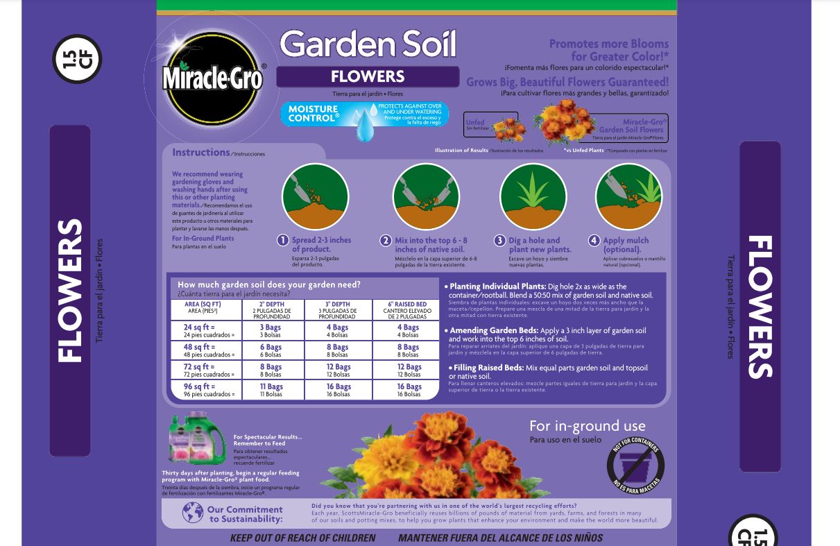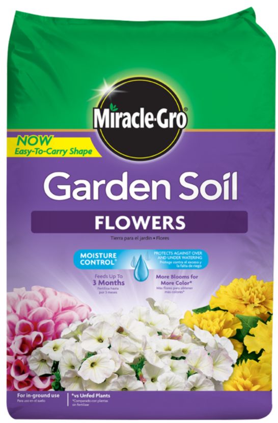 Ready to grow big, beautiful in-ground flowers? Trust Miracle-Gro® Garden Soil Flowers. Enriched with our continuous release plant food, this soil will feed for up to 3 months. Meanwhile, Moisture Control® technology protects plants against over- and under-watering. Grows Plants Twice as Big!®* with Miracle-Gro®.