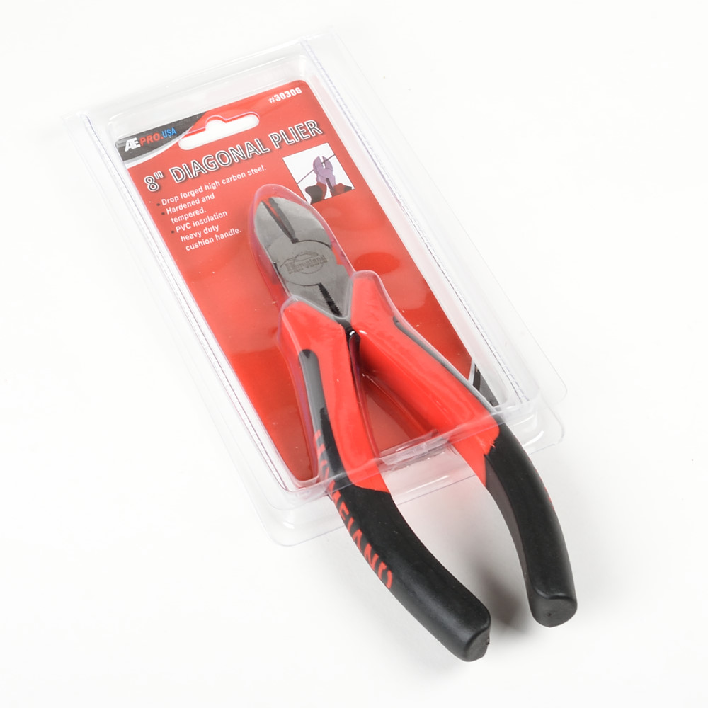 Drop forged high carbon steel. Hardened and tempered. PVC insulation heavy duty cushion handle.
