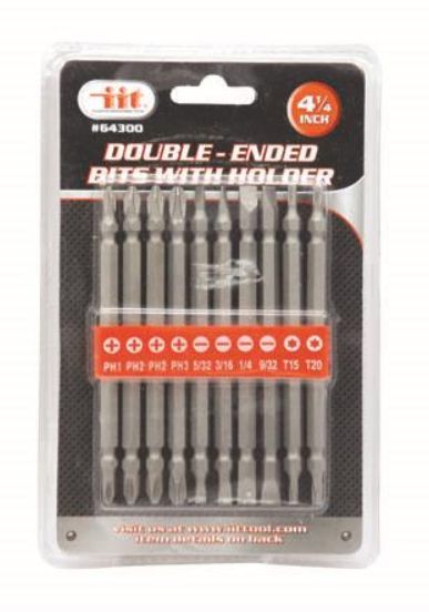 10pc assorted bits - 4 1/4 in . Precision machined tips will not slip. Can also be used with electric or cordless drills. Convenient belt clip included.