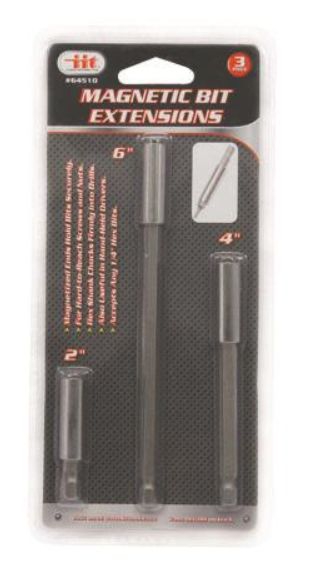 Magnetized ends hold bits securely. For hard-to-reach screws and nuts. Hex shank chucks firmly into drills. Also useful in hand-held drivers. Accepts any 1/4 in hex bits.