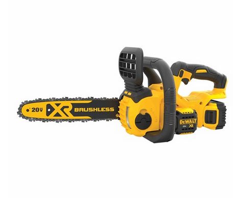 The 20V MAX* XR® Compact 12 in Cordless Chainsaw Kit adds versatility to your battery system. Gas-free operation eliminates the cold starts, fumes, carburetor issues, and maintenance involved with gas-powered chainsaws. Use it to cut beams, do demolition work, and manage tree limbs. This battery powered chainsaw is built to handle tough construction and outdoor work. The lightweight design maximizes user control. Brushless motor technology delivers extreme runtime and long motor life. Kit includes a 5Ah 20V MAX* battery, charger, and a hard bar cover.