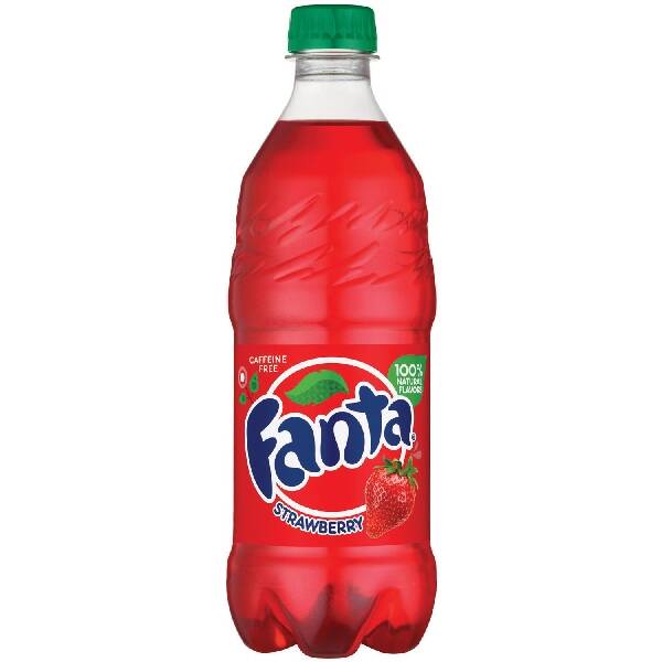 Fanta Soda, 20 fl-oz, Bottle, Strawberry, Ingredients: Carbonated Water, High Fructose Corn Syrup, Natural Flavors, Citric Acid, Sodium Benzoate, Red 40, Nutritional Information: 270 Calories, 0% Total Fat, 3% Sodium, 27% Carbohydrates, 74 g Sugars, 0% Protein, Calcium, Vitamin D, Iron, Potassium