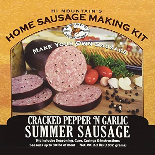 The HI Cracked Pepper/Garlic Ssge Kit Jerky is a 4.2 oz jerky kit designed to add bold cracked pepper and garlic flavor to your homemade jerky. If you make jerky at home or while hunting and want a straightforward, savory seasoning and cure, this kit brings classic spices and garlic-forward taste in one mix. The ingredient blend includes corn syrup solids, salt, spices, dehydrated garlic, monosodium glutamate and refined soybean oil (processed to be allergen free), with a curing mix of salt, sugar, sodium nitrite (.85%) and caramel color. Use this kit to season beef, venison or other meats before dehydrating or smoking to create snackable, long-lasting jerky with a pronounced pepper-and-garlic profile that holds up on outdoor trips, in lunch bags, or as a flavorful snack at home.