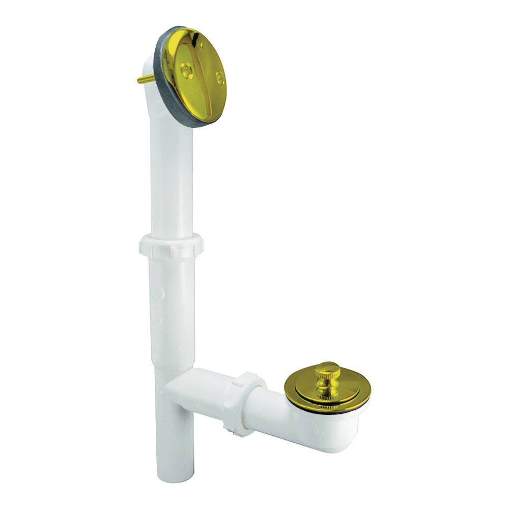 Precision molded construction. 4-1/4 in overflow vertical adjustment. 2 in waste shoe horizontal adjustment. 2 in long brass faceplate screws.