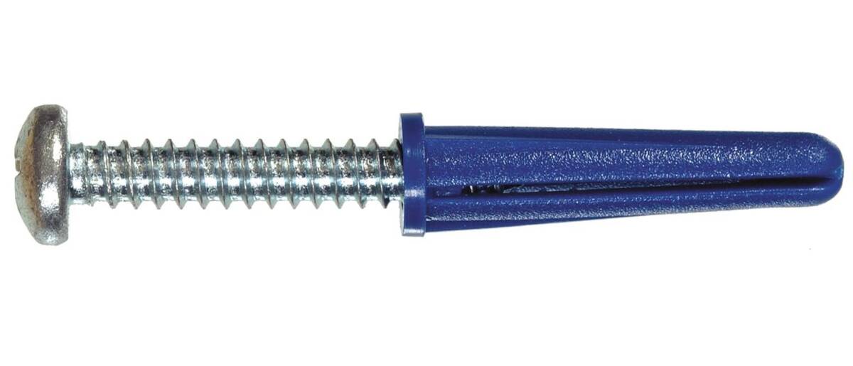 10-12 x 1-Inch Blue Conical Plastic Anchor With Screw 25-Pack