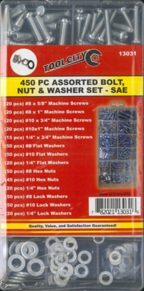 450-Piece Sae Assorted Bolt Nut And Washer Set