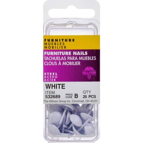 White Furniture Nail, 25-Pack, 1/2" x #17