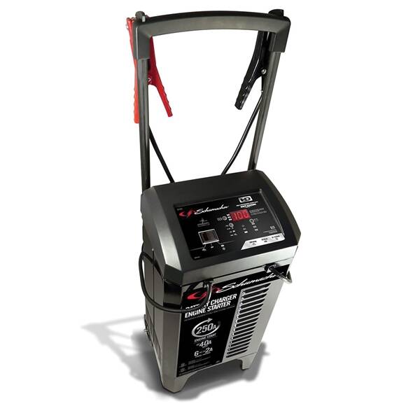 Schumacher Battery Charger/Engine Starter, Input Voltage: 120 V, Output Voltage: 6/12 V, Input Current Rating: 11 A Continuous, 50 A Intermittent, Battery Type: AGM, Cord Length: 12 ft , Display Type: Digital, Dimensions: 12 x 12.5 x 23.38 in