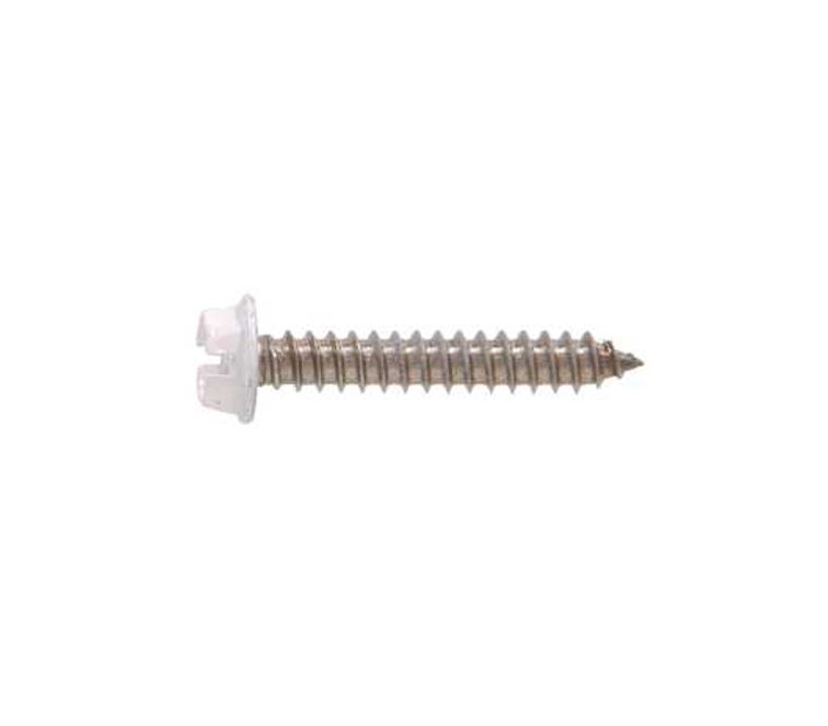 These slotted-drive, hex washer-head, stainless sheet metal screws feature a #8 screw size, a white painted head, and measure 1" in length