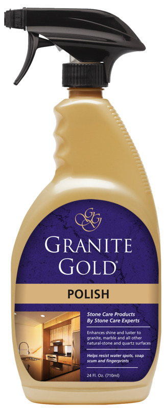 Before we created GRANITE GOLD, we were often asked for advice on how to polish marble, granite and other natural stone. Now you can quickly and easily enhance the shine and luster of your granite, marble and other natural stone surfaces. GRANITE GOLD Polish also works great on quartz surfaces as well as Corian. Regular use after cleaning with our granite cleaner, GRANITE GOLD Daily Cleaner, will bring out stone's natural beauty and provide ongoing protection against water spots and fingerprints. Polishing shower walls and tub surrounds will help prevent soap scum build-up. Do not use on floors, which can become slippery.