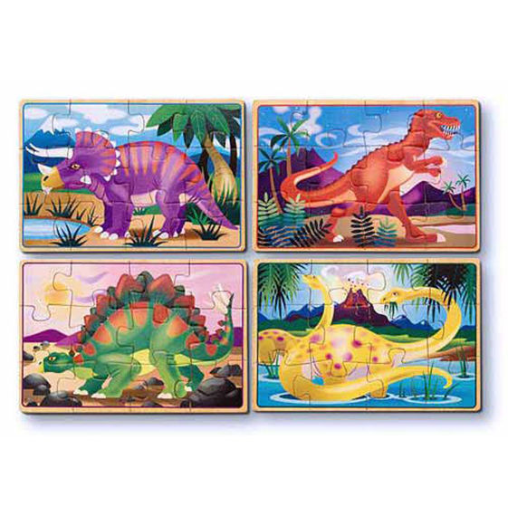 Includes Four wooden puzzles - a Triceratops, an Apatosaurus, a Stegosaurus, and a T-rex